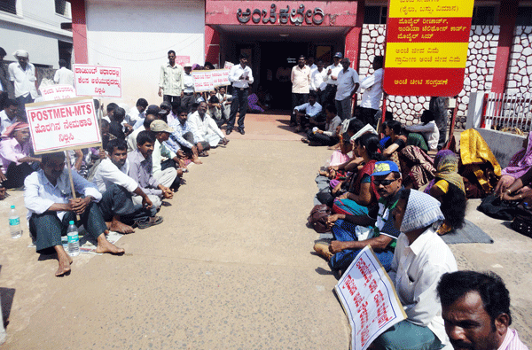 In Udupi too, rural postal employees were on protest since Feb 18, demanding to create 7th pay commission, informed working committee president B.Vijaya Nari and Secretary K.C.Annappa.