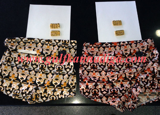 In the second case, the officers seized 06 (Six) gold pieces, totally weighing 233.250 grams and valued at Rs.7,23,075/- concealed in the underwear of a passenger named Shri. Ahmed Kabeer Moideen Kunhi, who is a resident of Chattanchal Kaniyadukkam, Shereef Manzil, Thekkil PO, Chengala Via, Kasaragod Dt., Kerala and arrived at Mangalore International Airport on 22.02.2014 at about 07.30 hrs by Air India Express flight IX814 from Dubai.