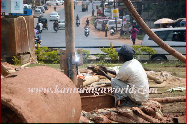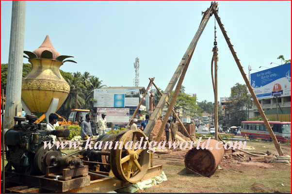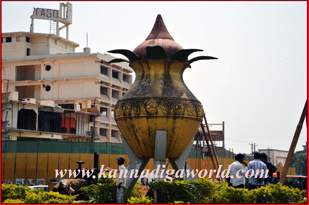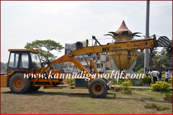 Mangalore, Feb 24: The special attraction to entry for port city with beautiful 26-ft Kalasha located at Mahaveer circle at Pumpwell is being demolished to construct a two-way flyover connecting Nantoor – Thokkottu National highway.