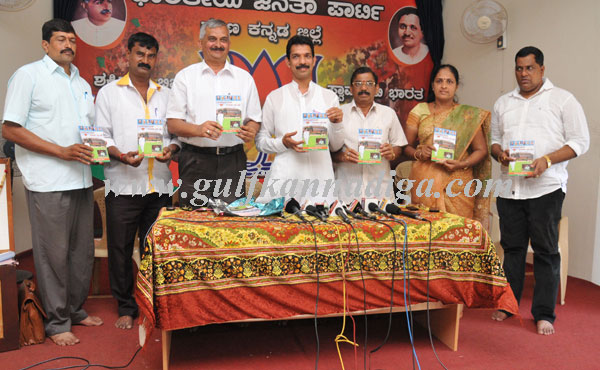 Mangalore, Mar 1: BJP District President Pratap Simha Nayak released a book titled ‘Nalin Kumar Kateel Samsadaraagi 5 Varsha: Kshetra Abhivriddhiya Pathadalli’ brought out by the district BJP unit at the BJP office on March 1, Saturday.