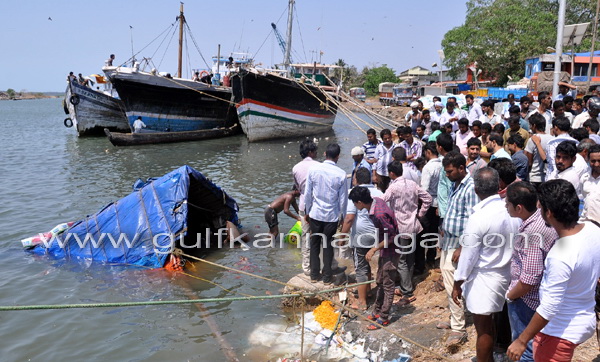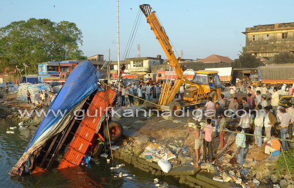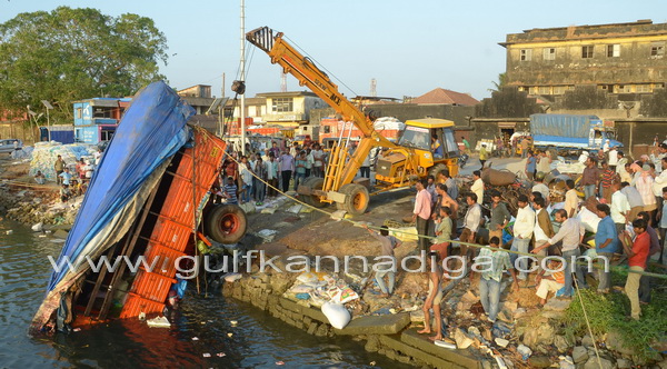 Mangalore, Mar 4: Lorry carrying rice and other groceries fell in to water at the old port on March 4, Tuesday afternoon.