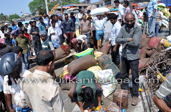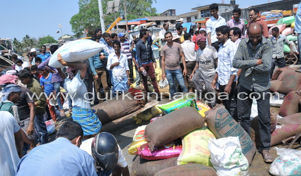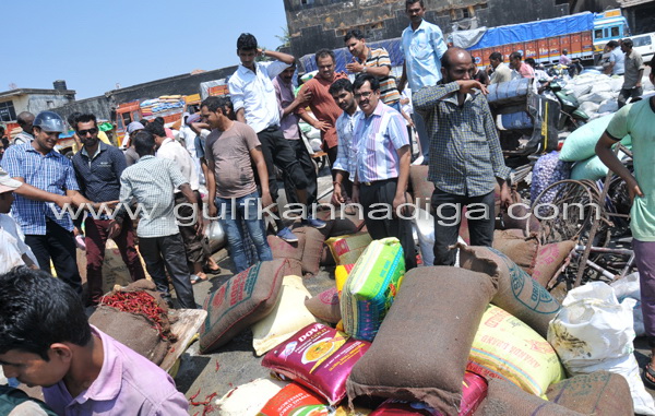 The lorry named ‘Lady of Fathima’ loaded with rice and other food grains from the port was ready to heading towards Bantwal, when the incident took place.