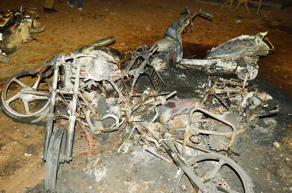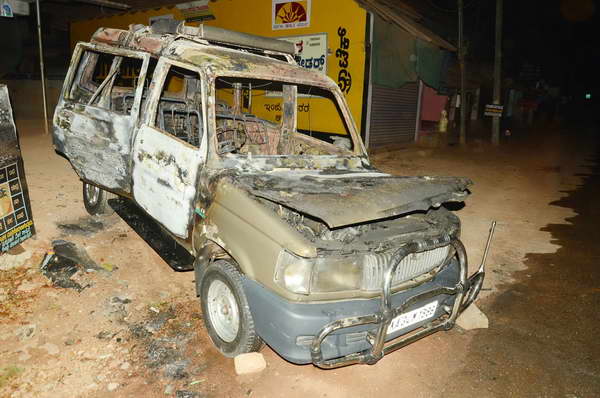Rival groups hurled stones and bottles at one another. A four-wheeler was set ablaze while two-wheelers were also damaged. Bantwal Station Inspector Sanjay Kumar, who tried to prevent the clash, was injured after a stone hit him. He has been admitted to a private hospital in Mangalore. As many as 10 people, including a youth, are said to be injured.