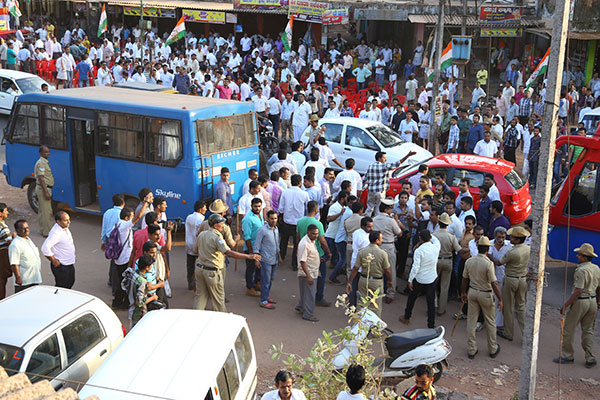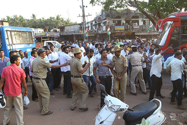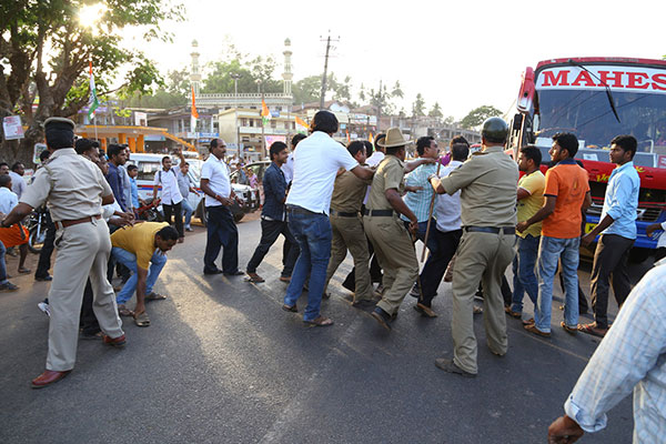 Violence erupted in the harmony convention when Zilla Panchayat member Chandraprakash Shetty, in his introductory remarks, criticised RSS leader Kalladka Prabhakar Bhat. Local youth took exception to his comment and complained to police. Meanwhile, the agitated youth began throwing stones and bottles on the venue, as well as the highway. Party workers also retaliated. The incident occurred in the presence of district in-charge minister B Ramanath Rai.