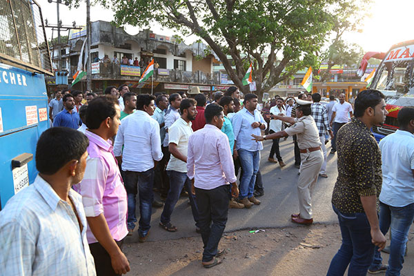 The police, deployed in small numbers on the spot, failed to control the situation immediately. They tried to disperse the crowd by resorting to mild lathicharge and lobbed tear gas shells. Amid this violence, a vehicle was set on fire. The highway was blocked for sometime because of the violence.
