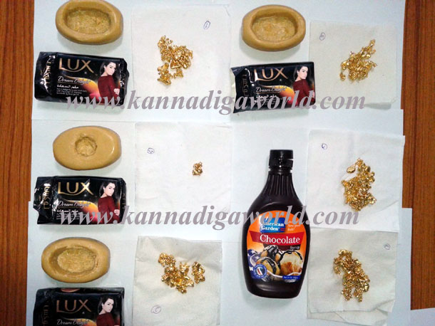 The officials have seized the gold pieces and granules, totally weighing 800.600 grams and valued at Rs.24, 09,806 concealed in four ‘LUX’ brand bathing soaps and one ‘American Garden’ brand Chocolate Syrup bottle from the passenger.