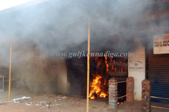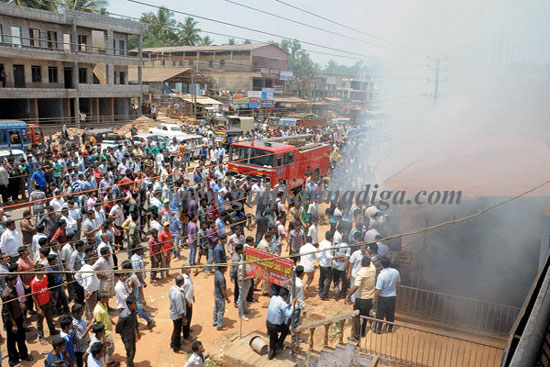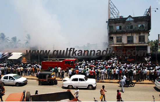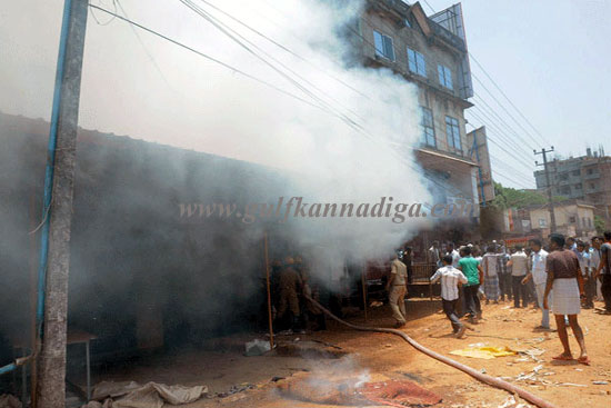 Mangalore, April 20: It has been reported that as a result of fire which broke out at Kaikamba, BC Road on April 20, Saturday at noon around 1.00 p.m, Sapna Traders-a cushion shop, a godown owned by Ashraf Sajipa and Sanjeeva Clinic have been completely gutted to ash.