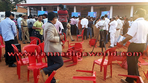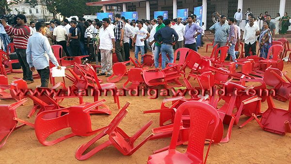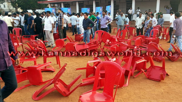 The siuation turned violent, when an SDPI activist from the audience questioned District in Charge minister Ramanath Rai regarding the arrest of Kalladka Prabhakar Bhat not done despite of his promise to do so. Immedietely Bajrang Dal activists were present on the spot objected to the question, since it is not related to the political debate. Soon the wnet out of control Congress, BJP and SDPI activists abusing each other.