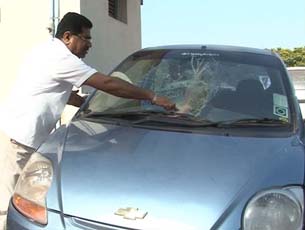 Some miscreants hurled stones at Bharat Kumar’s car, damaging the front shield of the car
