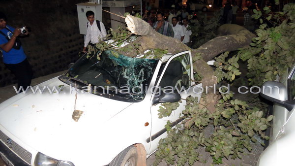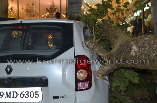 A Duster and a Zen were among the three vehicles damaged in the mishap, which were parked beneath the tree located near Electrical Point near the Bunts Hostel Circle.