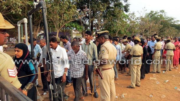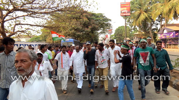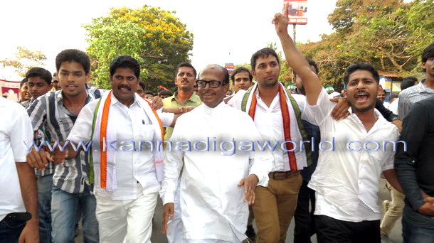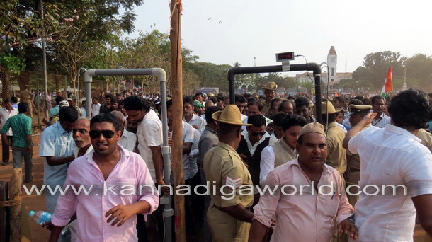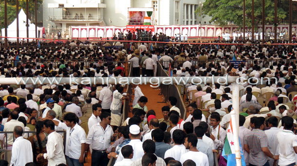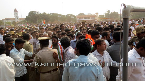 Mangalore, Apr 4: AICC vice-president Rahul Gandhi arrived at Nehru Maidan on Friday April 4 amidst loud cheering from thousands of Congress supporters and public in general.