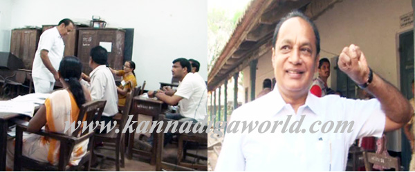Udupi, Apr 17: The Union Minister Oscar Fernandes along with his wife exercised their franchise at Vivekananda Higher Primary School, while Udupi Bishop Dr. Gerald Isaac Lobo cast vote at TA Pai Modern School coming in Udupi-Chikmagalur constituency on April 17, Thursday.