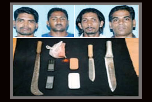 The arrested men have been identified as Mani alias Manikanta Poojary (29), a resident of Karamballi Janata Colony in the town, Vishwanath (27) from Pitrody Udyavar, Haroon Rashid (30) from Shirva Topanangadi Bhootabettu, and Ashok G Poojary (29), a resident of Bolaragudde in Udyavar near Udupi. Reportedly, another associate of this gang, Usman, has escaped. A sickle, a sword, a knife and a packet of chilli powder were recovered from their possession.