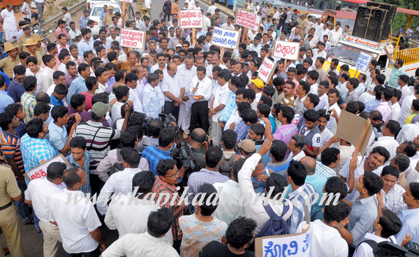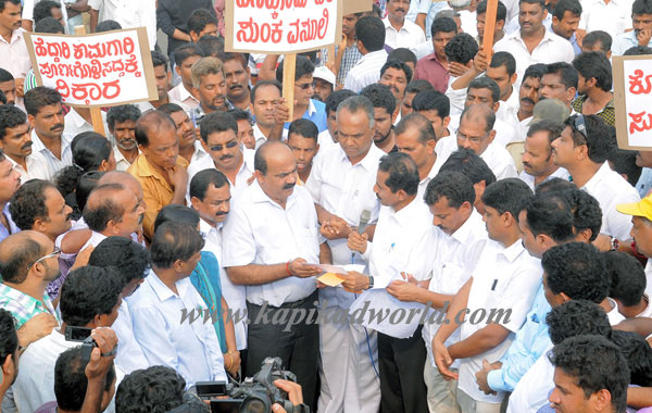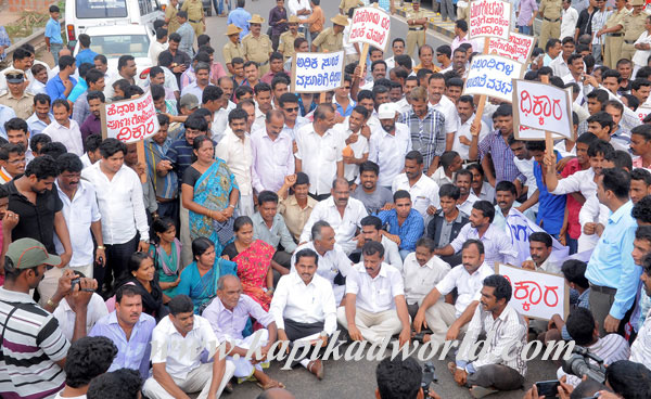 Congress leader Harikrishna Bantwal, Zilla panchayat member M S Mohammed, Mamatha Gatty, and others spoke on the occasion and warned to stage protest at large if the government fails to act as per the demand.