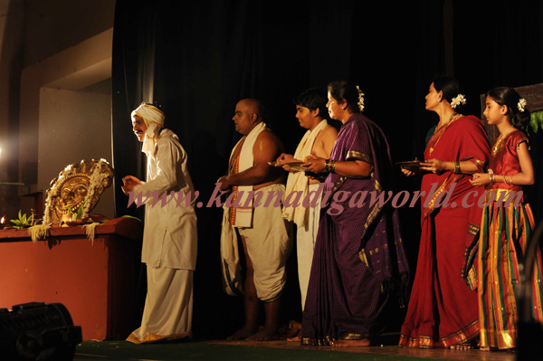 Mangalore, April 26: A Drama based on the book ‘Gandhi Bhandana’ was performed by the team of Rangamantapa here in A.B. Shetty Hall of Bunts Hostel, Mangalore. The book is authored by H.D. Nagaveni.