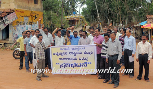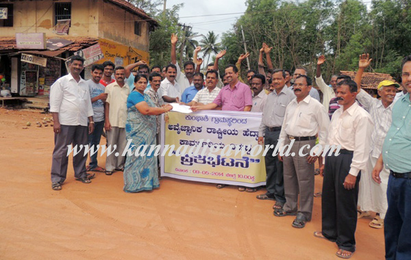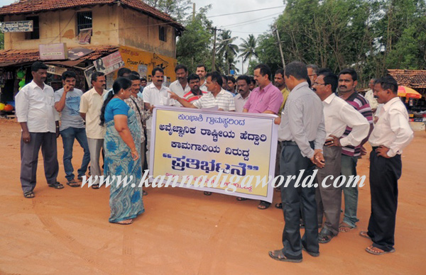 Protest against irrational construction of National Highway at kumbasi
