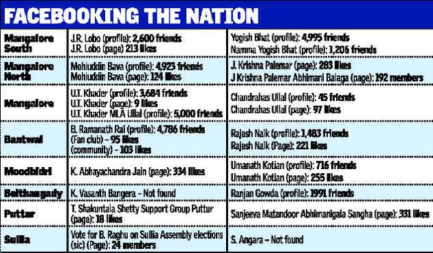 Beyond Facebook, a few candidates have an online presence in the form of websites, including Bantwal candidate U. Rajesh Naik, N. Yogish Bhat, J.R. lobo, Krishna J. Palemar, among others.