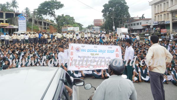 Bantwala, July 23: Students at Vamanapadavu and Kaladka protested against the sexual harassments against women and students occurring in the state. The students suspended their class and organised a huge protest on Tuesday, July 22.