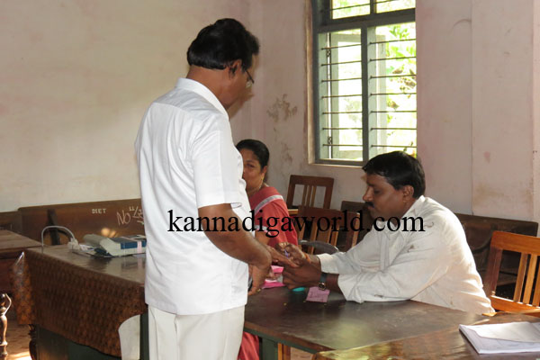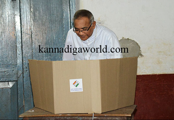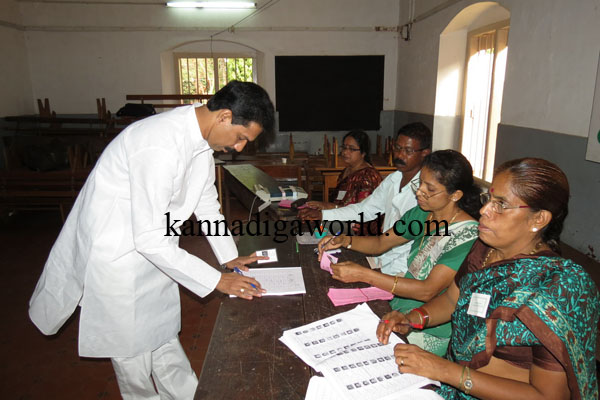 J R Lobo, congress candidate from Mangalore south constituency was the first one to cast his vote along with his family members in his constituency Bendore Sebastian school at 7.00 a.m, Yogish Bhat, BJP candidate from Mangalore south constituency and Krishna J Palemar, candidate from Mangalore north have exercised their votes at 8.00 am at Dayat school election booth, on Kodialbail, Jail road.