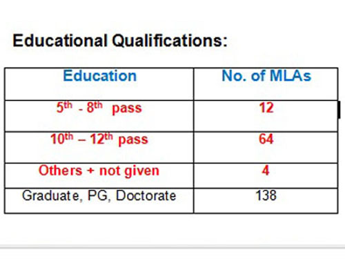 To make matters worse, there are 5 MLAs who have declared murder cases against their names, and another 11 with cases under Prevention of Corruption Act. The party-wise break-up is as under: