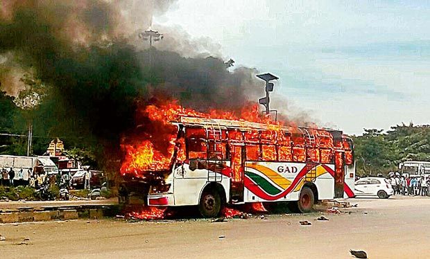According to police, the bus caught fire as the diesel tank was damaged. Mallikarjuna, who suffered 35 per cent burns, is in critical condition and is being treated at Victoria Hospital. According to doctors, he has breathing problems, has been put on ventilator and is yet to regain consciousness.Â