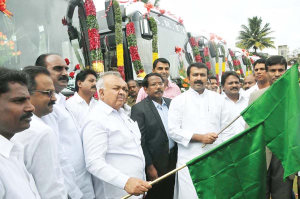 Bangalore, June 2: Transport minister Ramalinga Reddy on Sunday flagged off Karnataka State Transport Corporation’s (KSRTC) 50 new buses that will ply on new routes.