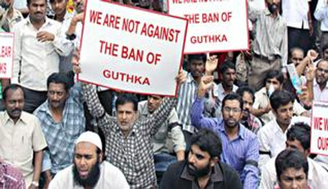Bangalore; Even as the Health Department officials are going about implementing the ban on sale of gutka and paan masala that came into effect on May 31, hundreds of gutka traders staged a protest here Monday demanding time from the State government to clear their existing stock.