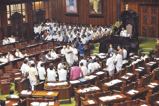 However, BJP members trooped into the well of the House insisting on their demand that the Bill be withdrawn or the disqualification clause be removed. The Speaker adjourned the House for sometime and called the floor leaders to his chambers to discuss the issue.