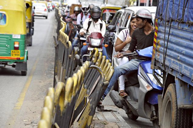 “There is no footpath and we are forced to walk on the road. With the heavy volume of traffic, we are always in danger of being run over by vehicles. Wherever the footpaths exits, they are uneven and some slabs are missing,” Guru Basavaraj, who is visiting the city from Bellary, pointed out.