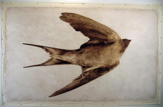 She had to wait a bit to find a crow, that she thought Andrew resembled, then freeze, manipulate and photograph it to finally paint a large image. Next she painted a series of bulls to commemorate Derrick Bell, a professor of law at Harvard. “He wrote on racism in American law and changed the way America law looked at racial issues. I chose a bull to personify him, just for his visual weight, for the solidness of it.” She then went on to paint Oscar Neebe (as a bison), one of the defendants at the Haymarket trial who was pardoned; Martha Ballard (as a moth), a Colonial mid-wife who kept extensive records of her 60-year career; Lucy Parsons (as a swallow), the feared wife of one of the Haymarket trial defendants and more recently, Reverend Linnette C. Williamson of Harlem (as a lamb, pitbull and later elephant) for her community service.