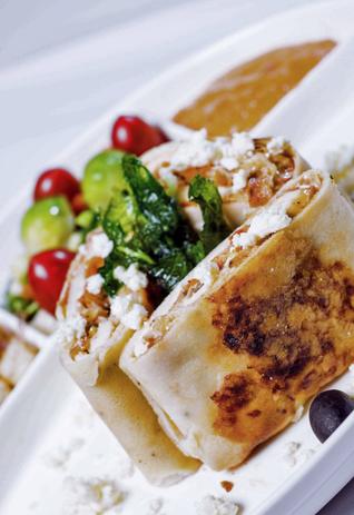 Next is a slice of old-world Germany—a Bavarian Roulade. Cheese and gherkins are swathed by thin, finely cut slices of meat, before being gently browned, cooked in broth and served with a side order of vegetables and bell pepper marmalade. The amount of meat I have consumed is overwhelming and I’m delighted that the next item is for vegetarians, a serving of Salt Pancakes. The pancake itself is decadently soft and the filling is delicious—a soft crumble of mushroom and Riccotta topped with a creamy Tomato Smetana. There is also a tasty but slightly boring vegetarian steak, on a bed of cheese laced aubergines.