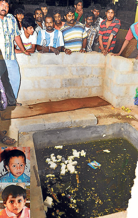 It was learnt that the building and the site belonged to a person named Armugam of Tamil Nadu. The construction came to a standstill six months ago following a dispute over the land. The sump, which was left uncovered, was around four feet wide and seven feet deep. The site did not even have a gate, thus providing the children easy access to the sump.