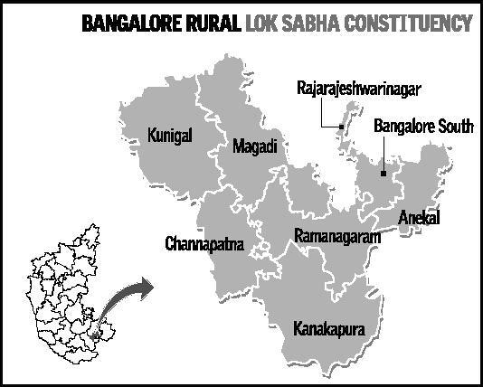 The Assembly constituencies in Mandya are Malavalli, Maddur, Srirangapatna, Krishnarajanagar, Krishnarajapet, Melkote, Nagamangala and Mandya, while Bangalore Rural has Rajarajeshwarinagar, Channapatna, Ramanagaram, Magadi, Kanakapura, Anekal, Kunigal and Bangalore South Assembly segments.