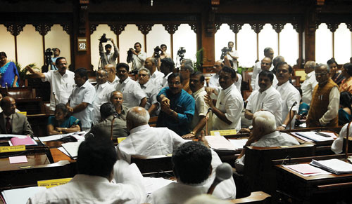 A fuming Gowda retaliated, “Maybe the persons involved are supporters of Allamaprabhu. We are not scared of such goonda politics.” He led the members into the well of the House and staged a protest.