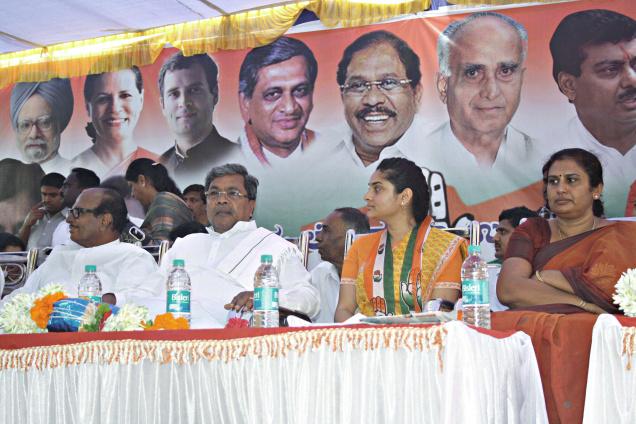 Mandya, August 15: Congress workers received a fillip in Mandya district on Wednesday with Chief Minister Siddaramaiah and prominent leaders of the party hitting the campaign trail for the bypolls for Mandya Lok Sabha constituency where the party has fielded actor-turned-politician Ramya.