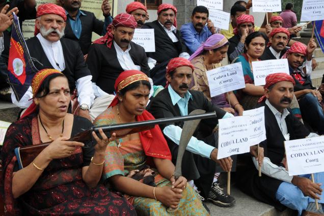 BANGALORE, August 19: Volunteers of the Codava National Council (CNC) held a ‘satyagraha’ here on Sunday demanding an “autonomous Codava land” under the Sixth Schedule of the Constitution.