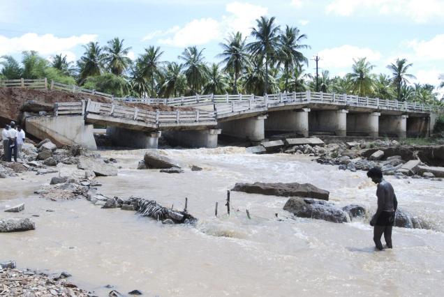 Tumkur, August 20: For the last five years, the Yaladabagi bridge at Sira taluk in Tumkur district has been sinking, triggered by indiscriminate sand extraction. The State government has not taken steps to repair or reconstruct the bridge. All the while, vehicles and people continue to cross it unmindful of the danger.