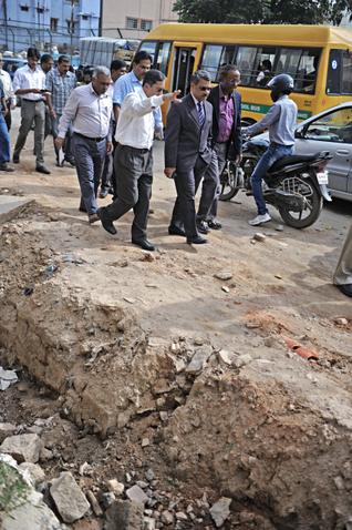 BANGALORE, August 28: BBMP Commissioner M. Lakshminarayan has assured Upa Lokayukta Subhash B. Adi that the repair of all major roads in the city will be completed within six months. The assurance came after Mr. Adi conducted a surprise inspection of Hosur and Viveknagar main roads on Tuesday.