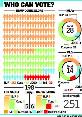 Meanwhile, rumours were rife that R.R. Nagar MLA and Yeshwanthpur councillor Munirathna from the Congress would file his nomination papers for the mayor’s post. However, the Congress leadership did not confirm this. Dinesh Gundu Rao, who heads the party’s city unit, told The Hindu that the situation did not warrant any Congress councillor to contest for the mayor’s post. Mr. Munirathna was not available for comment.