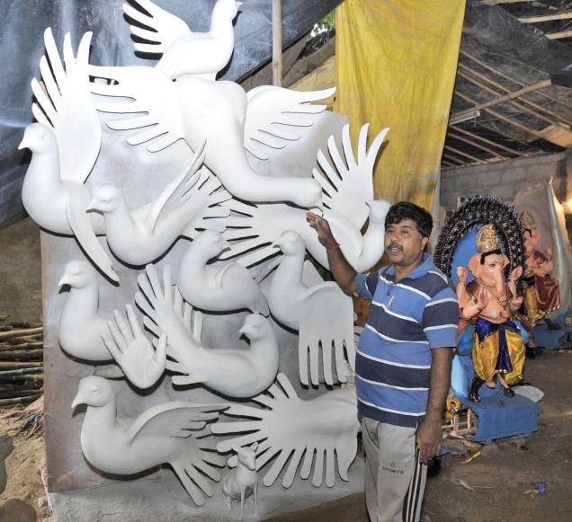 Bangalore: Ganesh idols in various guises — there’s Bal Ganesh, and one, with its trunk morphing into a dove, symbolising peace — are parked at Chandrashekar Pal’s workshop off Nandidurg Road, waiting for a final dash of colour and decoration.