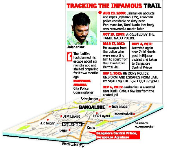 BANGALORE: Notorious criminal and serial rapist Jaishankar, who made a sensational escape from the high-security central prison here on September 1, was arrested on Friday.