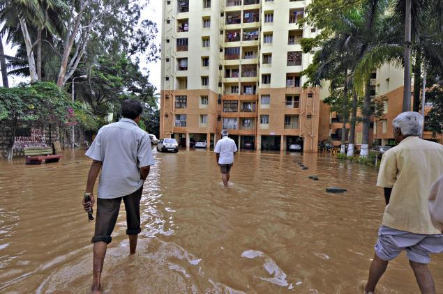 Bangalore, September 15: Arivudainangai K., a class 9 student, wading in knee-deep water, exclaimed: “Look at the chocolate waters of Kendriya Vihar!”