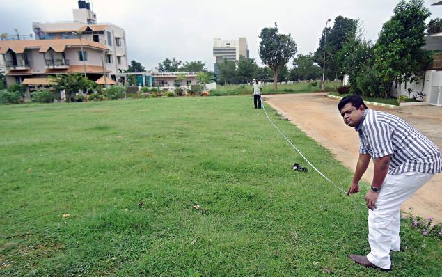 Park number 20, which according to the relinquishment deed is supposed to measure 21,112 sq. ft., is only 18,750 sq. ft. when measured with a tape. Although The Hindu wanted to measure more parks in the area, the hostility of the security guards forced us to retreat. Park number five, which is supposed to measure 55,000 sq. ft. or 1.5 acres appeared no larger than a tennis court.