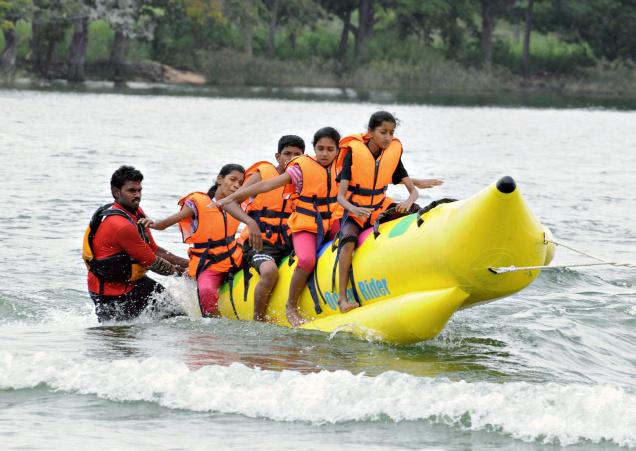 People are heading to the picturesque spot to experience some adrenaline rush as water sports as part of Dasara adventure sports are being conducted there.