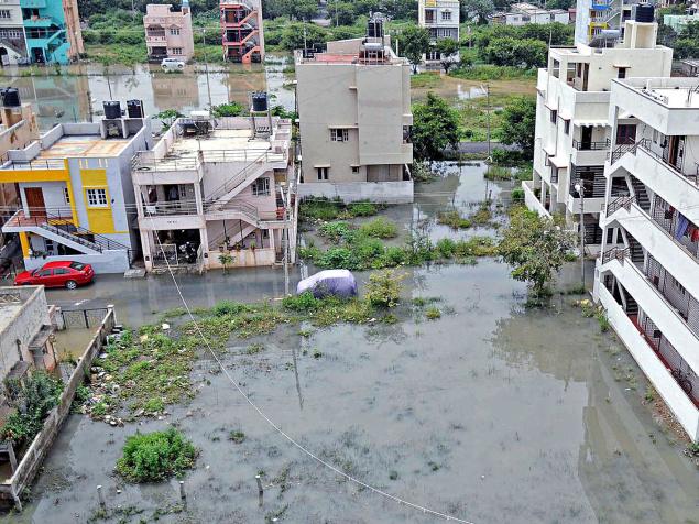 Local councillor S.A. Purushottam visited the spot and squarely blamed the BBMP, BDA and BWSSB for the flooding. He complained that the BWSSB had not executed the underground drainage work satisfactorily.