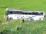 Siddapur (Uttar Kannada district), Nov 1, 2013, DHNS : Three persons were killed and over 20 sustained injuries when a Karnataka State Road Transport Corporation (KSRTC) bus fell off the road into a farm land, on the Sagar-Jog road near Joginmutt in the taluk, on Friday morning.