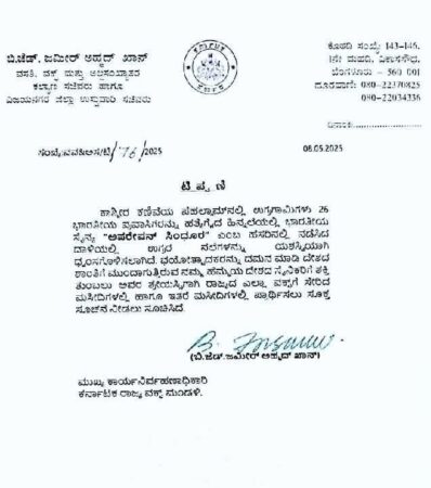 ಬೆಂಗಳೂರು: ʼಆಪರೇಷನ್ ಸಿಂಧೂರʼ ಹೆಸರಿನಲ್ಲಿ ಭಾರತೀಯ ಸೇನಾಪಡೆ ಬುಧವಾರ (ಮೇ7)ರಂದು ಮುಂಜಾನೆ ನಡೆಸಿದ ಕ್ಷಿಪಣಿ ದಾಳಿಯಲ್ಲಿ ಭಯೋತ್ಪಾದಕರ ಒಂಬತ್ತು ಅಡಗುತಾಣಗಳನ್ನು ನಾಶಪಡಿಸಲಾಗಿತ್ತು.