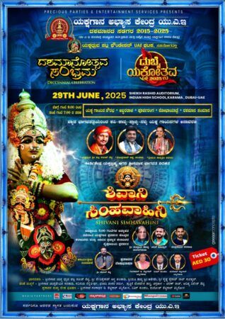 ದುಬೈ: ಯಕ್ಷಗಾನ ಅಭ್ಯಾಸ ಕೇಂದ್ರ ಯುಎಇ., ಮಧ್ಯಪ್ರಾಚ್ಯದ ಹೆಮ್ಮೆಯ ಸಂಸ್ಥೆಯ ದಶಮಾನೋತ್ಸವ ಸಂಭ್ರಮ ಮತ್ತು ದುಬಾಯಿ ಯಕ್ಷೋತ್ಸವ 2025ರ ಅಂಗವಾಗಿ ನಡೆಯಲಿರುವ ಅದ್ದೂರಿಯ ಯಕ್ಷಗಾನ ಸಂಬಂಧಿ ಕಾರ್ಯಕ್ರಮ, ಗಲ್ಫ್ ರಾಷ್ಟ್ರದಲ್ಲಿಯೇ ಪ್ರಥಮ ಬಾರಿಗೆ ನಡೆಯಲಿರುವ ‘ಯಕ್ಷಗಾಯನ ಸೌರಭ’ ಮತ್ತು ‘ಶಿವಾನಿ ಸಿಂಹವಾಹಿನಿ’ ಇದರ ಆಮಂತ್ರಣ ಪತ್ರ ಮತ್ತು ಪ್ರವೇಶಪತ್ರದ ಬಿಡುಗಡೆ ಸಮಾರಂಭವು ದುಬೈನ ಹೋಟೇಲ್ ಫಾರ್ಚೂನ್ ಪ್ಲಾಝದ ಬ್ಯಾಂಕ್ವೆಟ್ ಹಾಲ್ನಲ್ಲಿ ನಡೆಯಿತು.