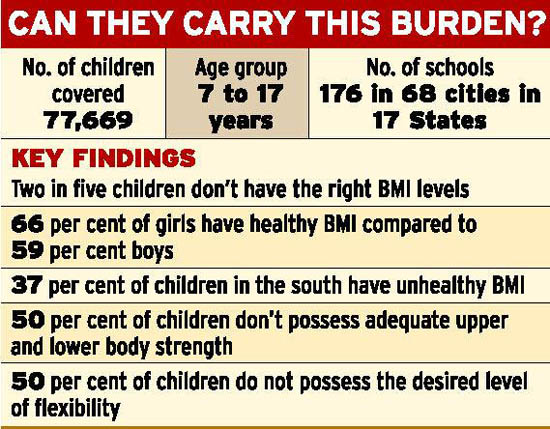 A release said the primary causes for higher BMI are ‘sedentary lifestyles, unhealthy eating habits and little or no play’. “High BMI is a direct indicator of the onset of obesity, which can lead to several health problems, including Type2 diabetes, heart ailments and high blood pleasure as early as adolescence,” the release added.