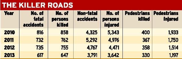 These figures were provided by the traffic police at the launch of ‘Sugama Safewalk’ programme on Wednesday.